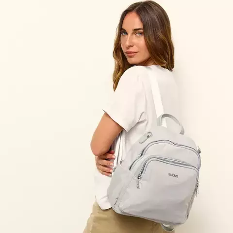 Bolsillos exteriores: uno frontal con cierre, dos laterales y uno con cierre en espalda
