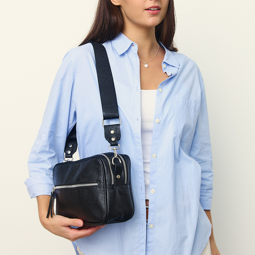 Con doble correa desmontable: una de cinta y una de cuero